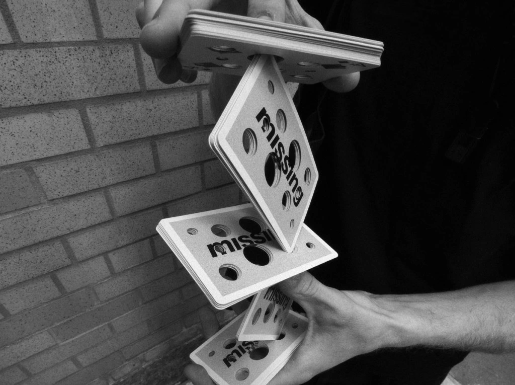 Missing Base 04 is an elegant gray deck of cards with black and white faces.