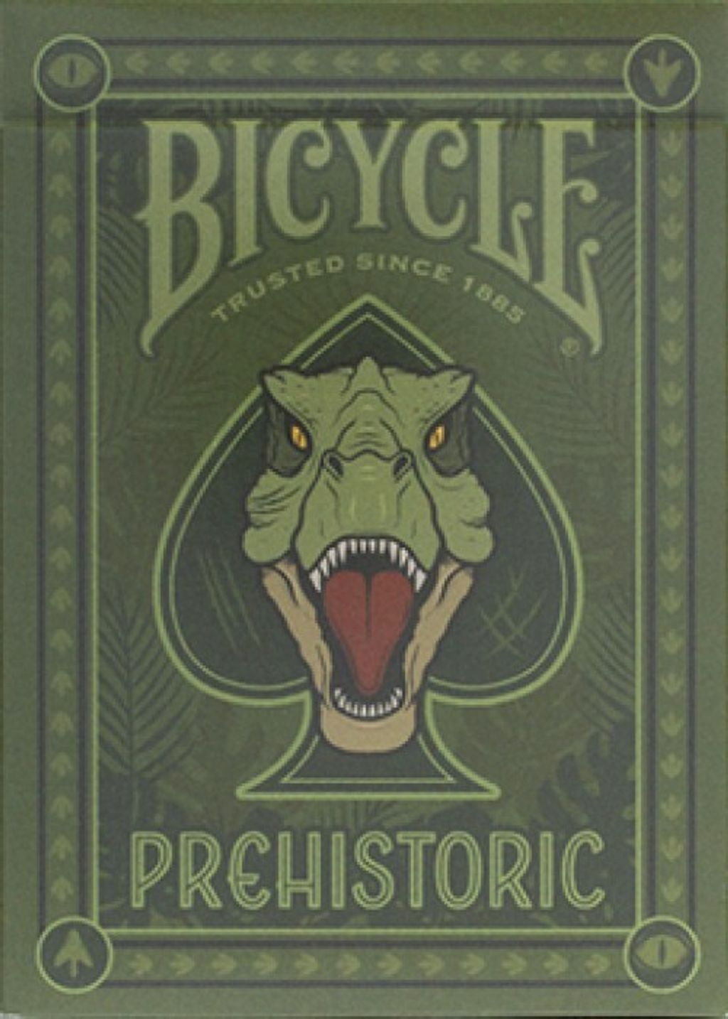 Take a step back in time with the Bicycle® Prehistoric deck. This deck has recolored faces and a custom Ace of Spades as well as a custom back card.