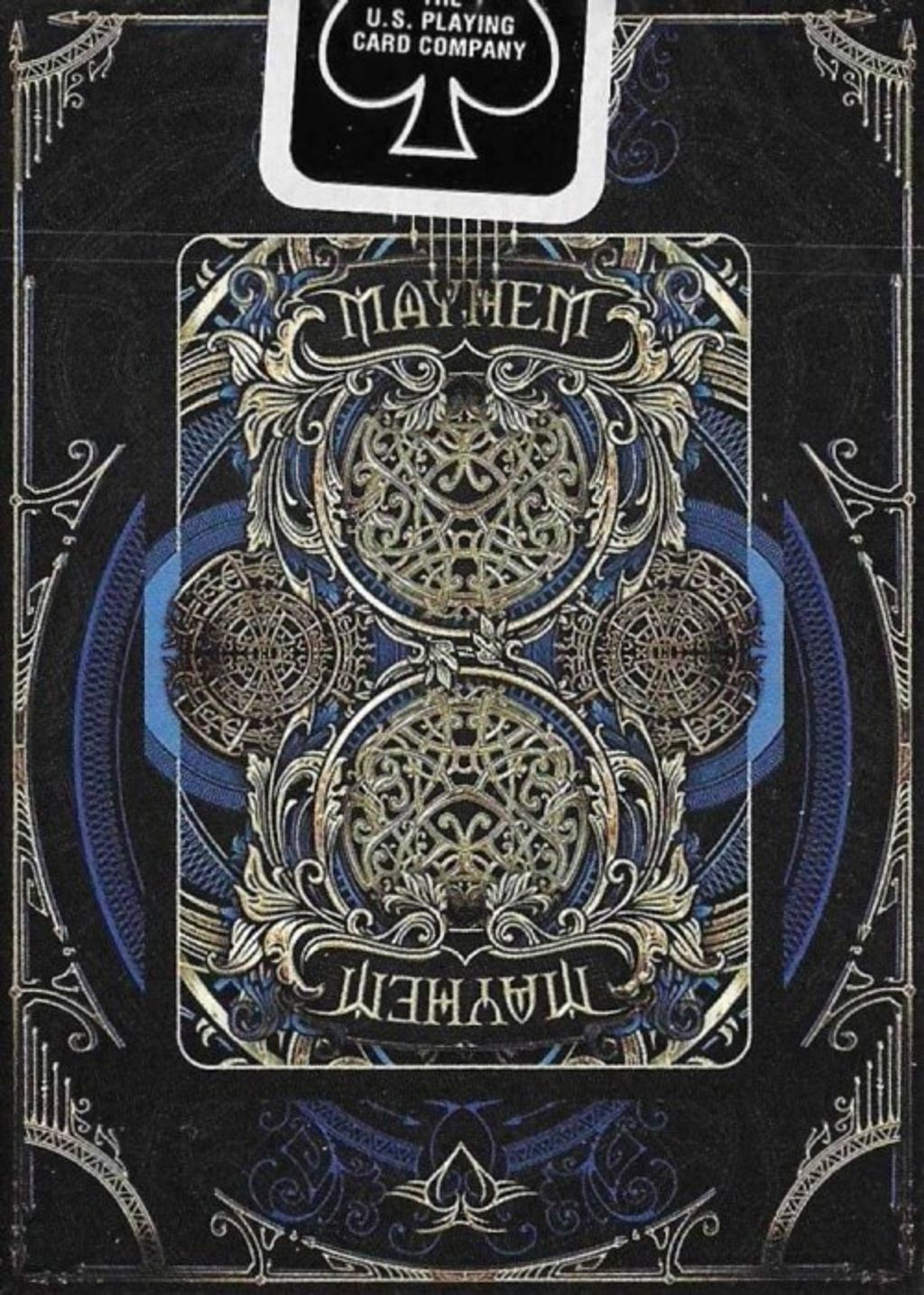 The Mayhem deck V2 Blue is about the freedom of creativity, inspired by many unique creative styles, yet when combined form a beautiful symbiosis. We chose the name Mayhem in reference to the theory that from Chaos comes order, the chaos in this deck being the conglomeration of the very different styles used in the design of this deck.