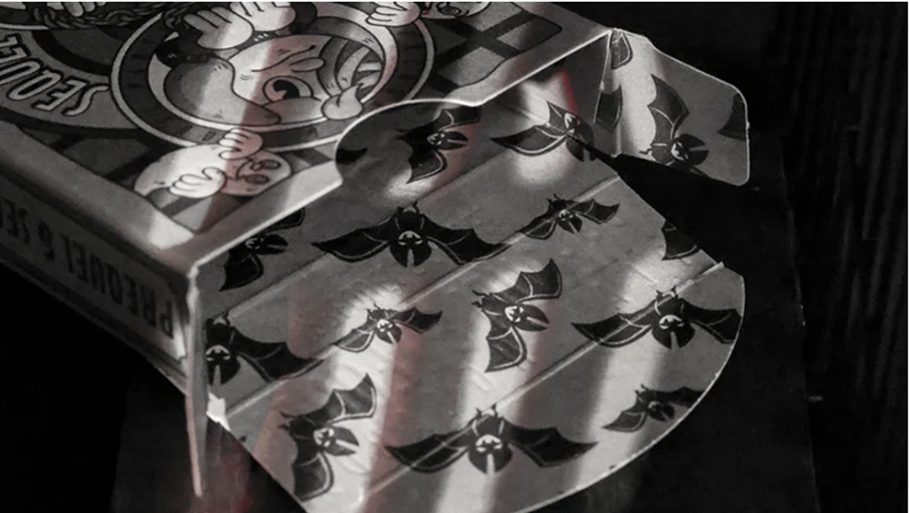 Featuring an embossed color-isolated tuck box with a fully printed tuck box interior, decorated with classic cartoon bats, the