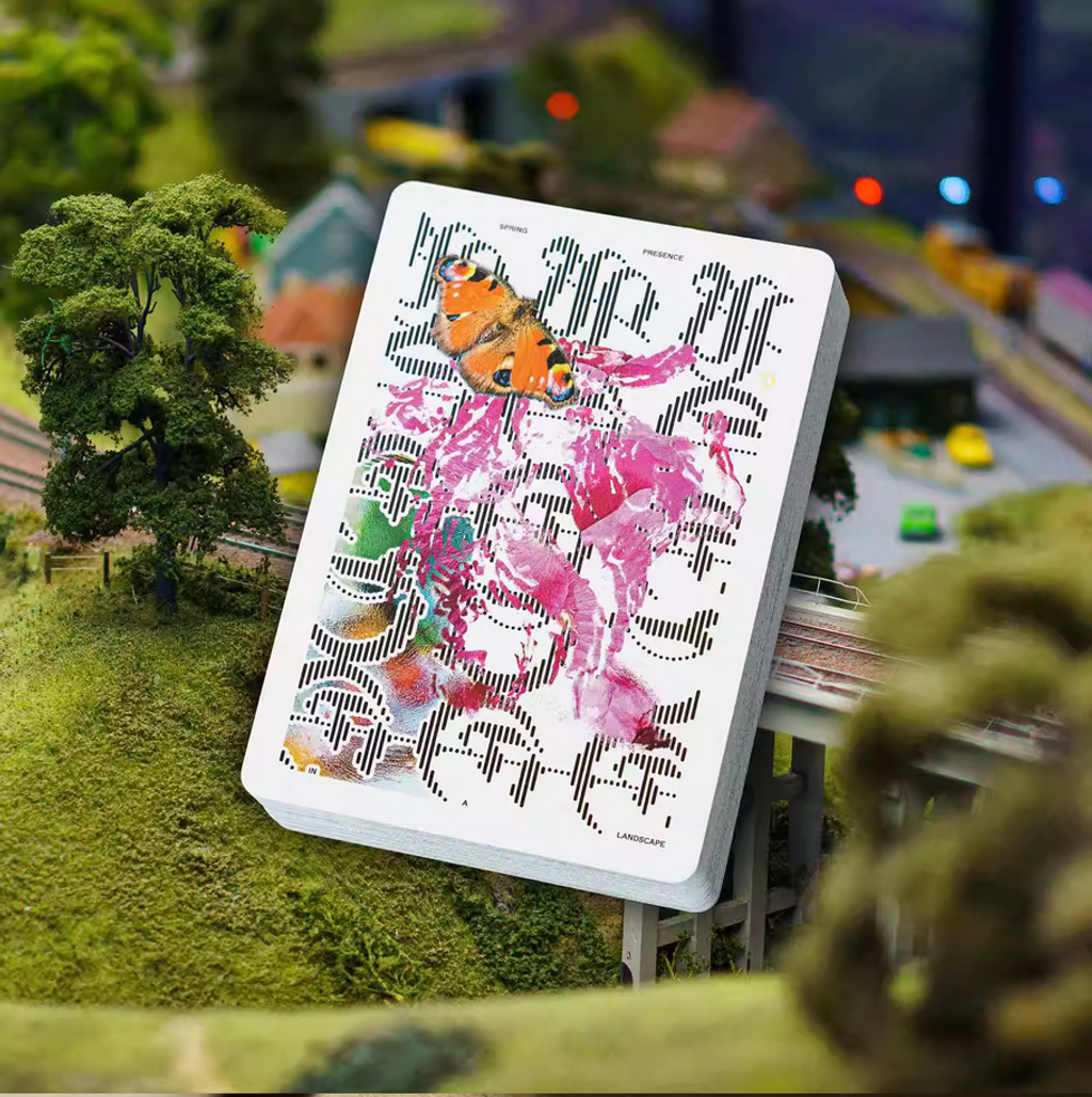 A pathway blanket of multiple truths. Aglais Io, Rosa Rugosa and Vitrum on a typographic foundation — serving as a holistic mood board of observations throughout springtime.