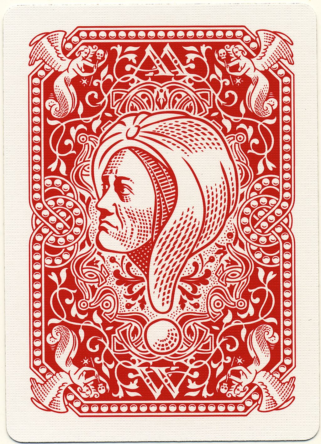 The Ask Alexander deck is printed on the finest casino paper and to the highest standards available at the United States Playing Card Company. During the course of Conjuring Arts Center efforts to make various custom playing card decks, they have made numerous trips to the USPCC's facilities in order to personally oversee the manufacture of their playing cards and to make any and all adjustments necessary to craft the perfect deck of cards. The cards are cut in the same fashion as their previous decks to facilitate smooth handling and effortless faro shuffles.You may notice a similarity to Bulldog Squeezers and Angel Back Squeezers. The bold one way back design of the Bulldog Squeezers combined with the elegance and nuance features of the Angel Back Squeezer deck make this a must have.