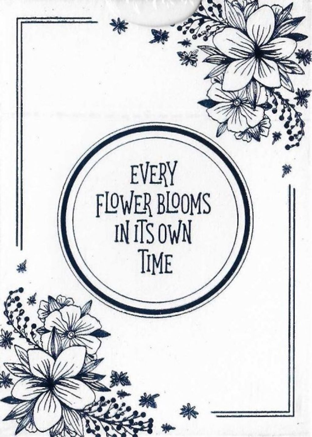 Bloom Sapphire is produced by EmilySleights52 and manufactured by WJPC. The cards are durable, yet soft and smooth and also hold up over long periods of time. The spread, fan, faro and dribble with ease!"Every flower blooms in its own time" is the quote that I center the meaning of this deck around. I think the quote is inspirational and comforting, so I like to portray the statement that personal growth should never be rushed, but instead embraced at whatever time goals are accomplished.