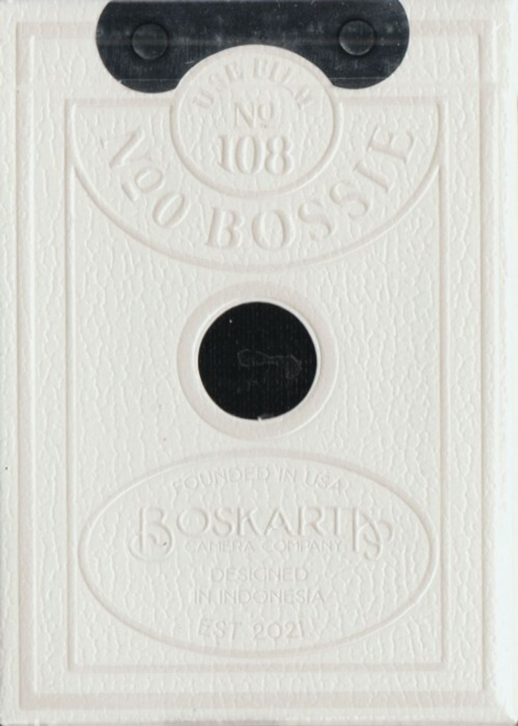The middle of the tuck will have a die-cut hole with thin plastic to look like the lens. It will also have a silver seal that mimics the open mechanism on the actual Brownie model A camera. We want this to look and feel like the real thing.