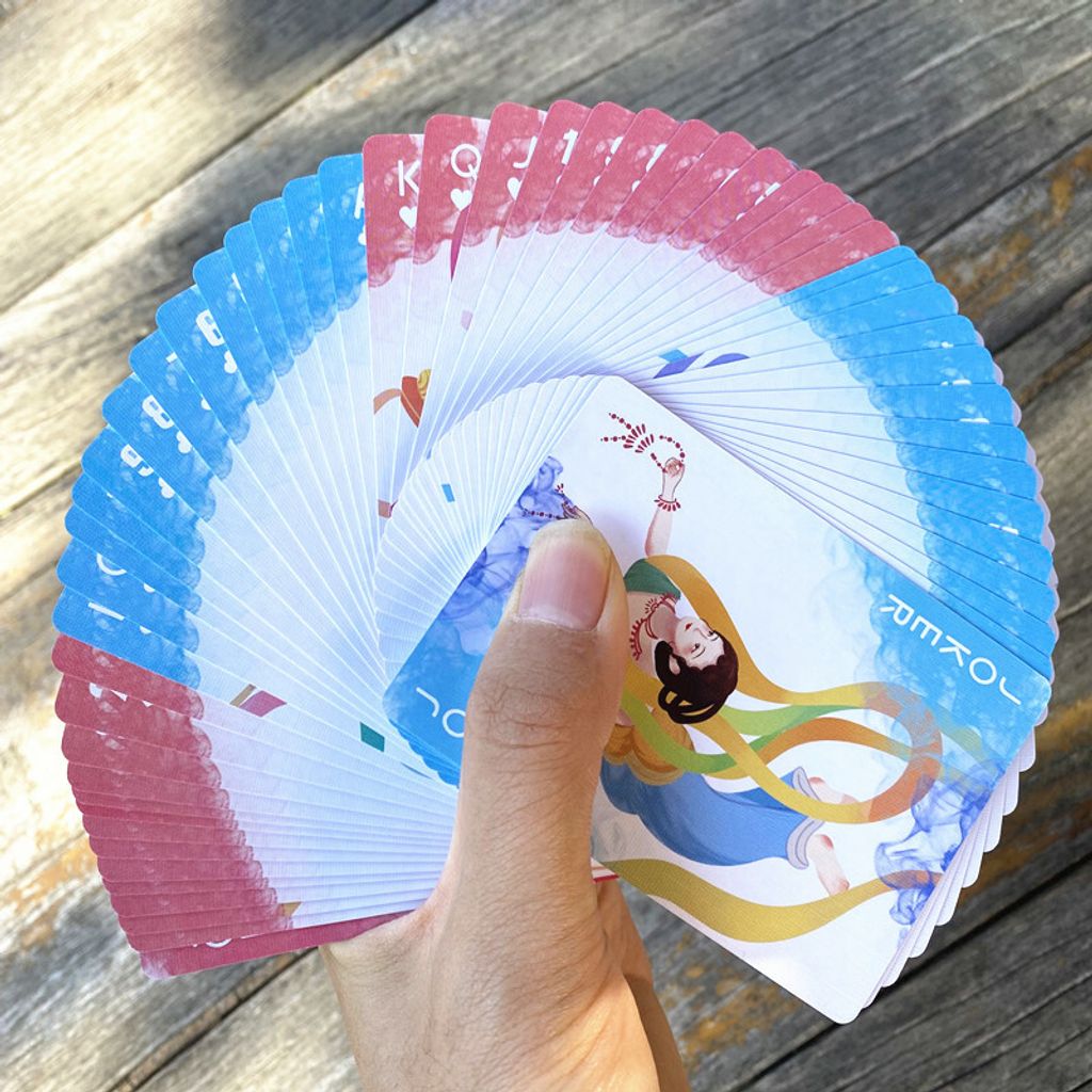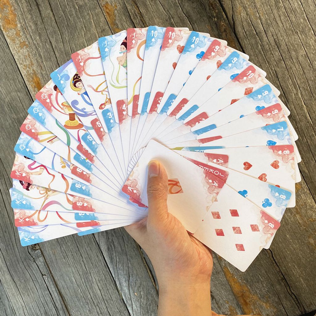 Charming Youmeng is a classically shaped playing card based on the ancient flying fairy. It has been adjusted and improved several times in terms of the pattern and color matching of the suits and the character prototypes. Now we present this finished product in front of everyone's eyes. , it can be said that this product is also our understanding of playing card patterns to a new height.