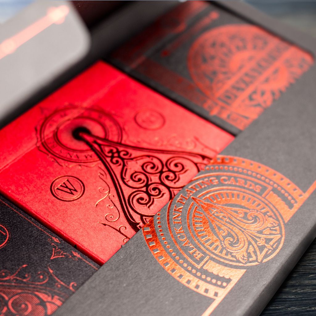 - The tuck case will be made with premium matte card stock box, fully embossed and foiled, combined with red metallic ink