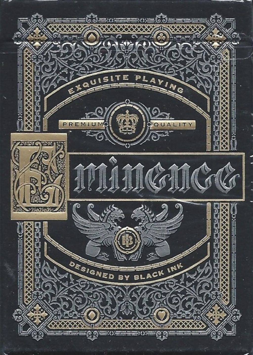 The Eminence Playing Cards are a fully custom deck of playing cards inspired by elegance and royalty. Eminence, like its definition, is positioned in the realm of prominence and superiority among the playing card world.