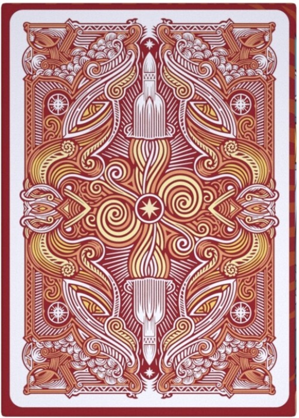 Escape Velocity decks are available in two editions: the Blue version pays homage to the cold depths of space, while the Red draws inspiration from the fiery bursts of rocket engines.