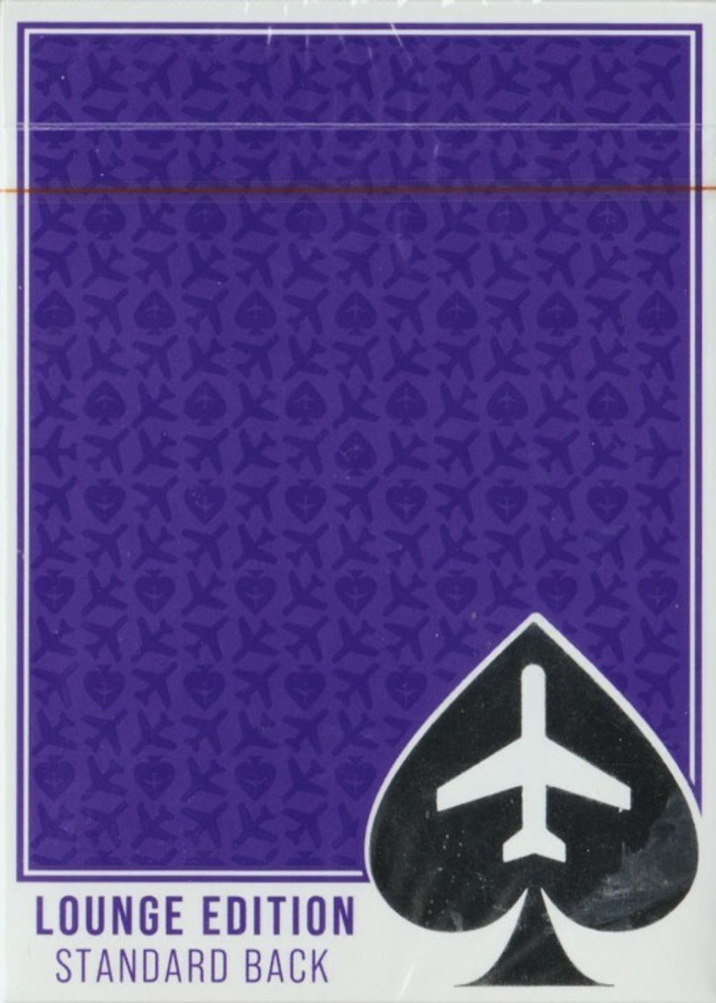 With the Standard Back version of the Lounge Edition in Passenger Purple, the playing cards showcase re-colored standard faces and have an untraditional offset classic and casino inspired back design that pays homage to a major US-based airline's livery of recent years with the purple colorway. The cards are traditionally cut to provide the ability to weave or faro shuffle facedown. The tuck box exhibits premium features with a durable synthetic stock material, clear UV spot varnish, and silver foil accents.