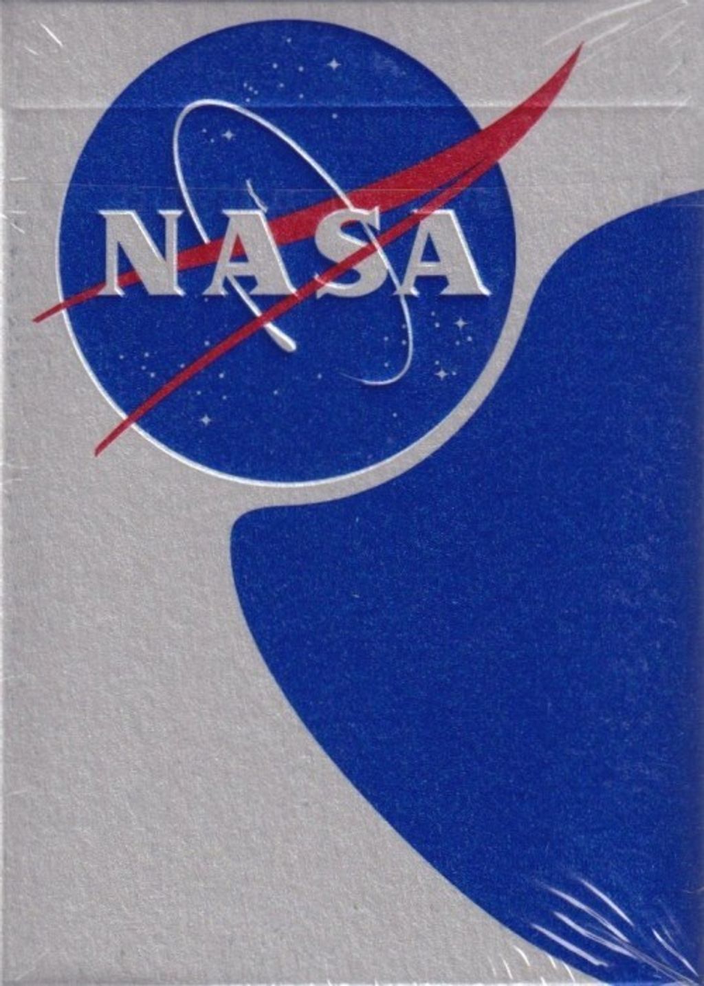 These NASA Playing Cards feature an entire back laced with silver foil and highlight the "meatball" logo used by NASA. Housed in a metallic silver tuck box embossed with the "meatball".