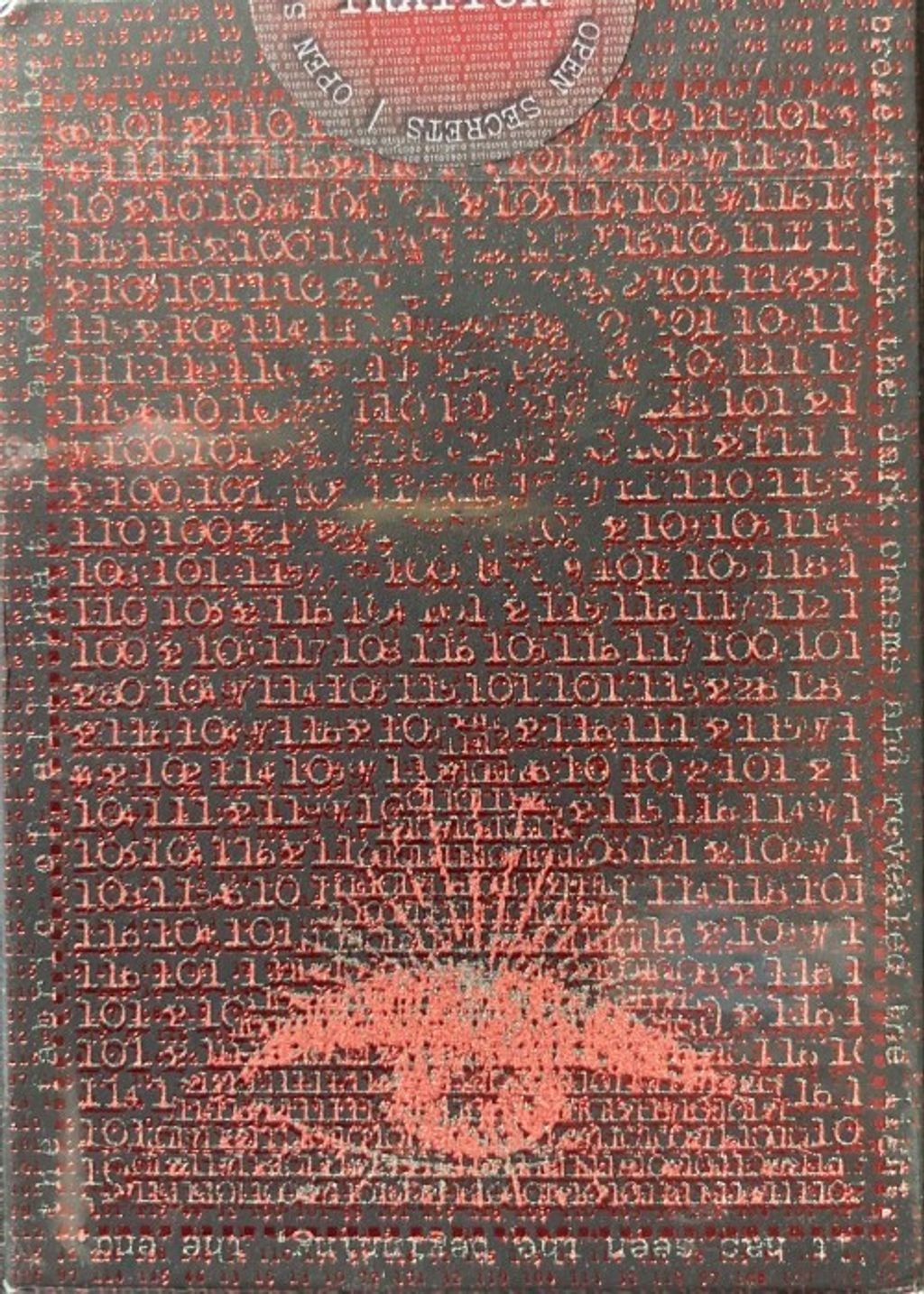 The back pattern is binary, a conversion of the same piece by Da Vinci into machine language, in line with the theme of the card.