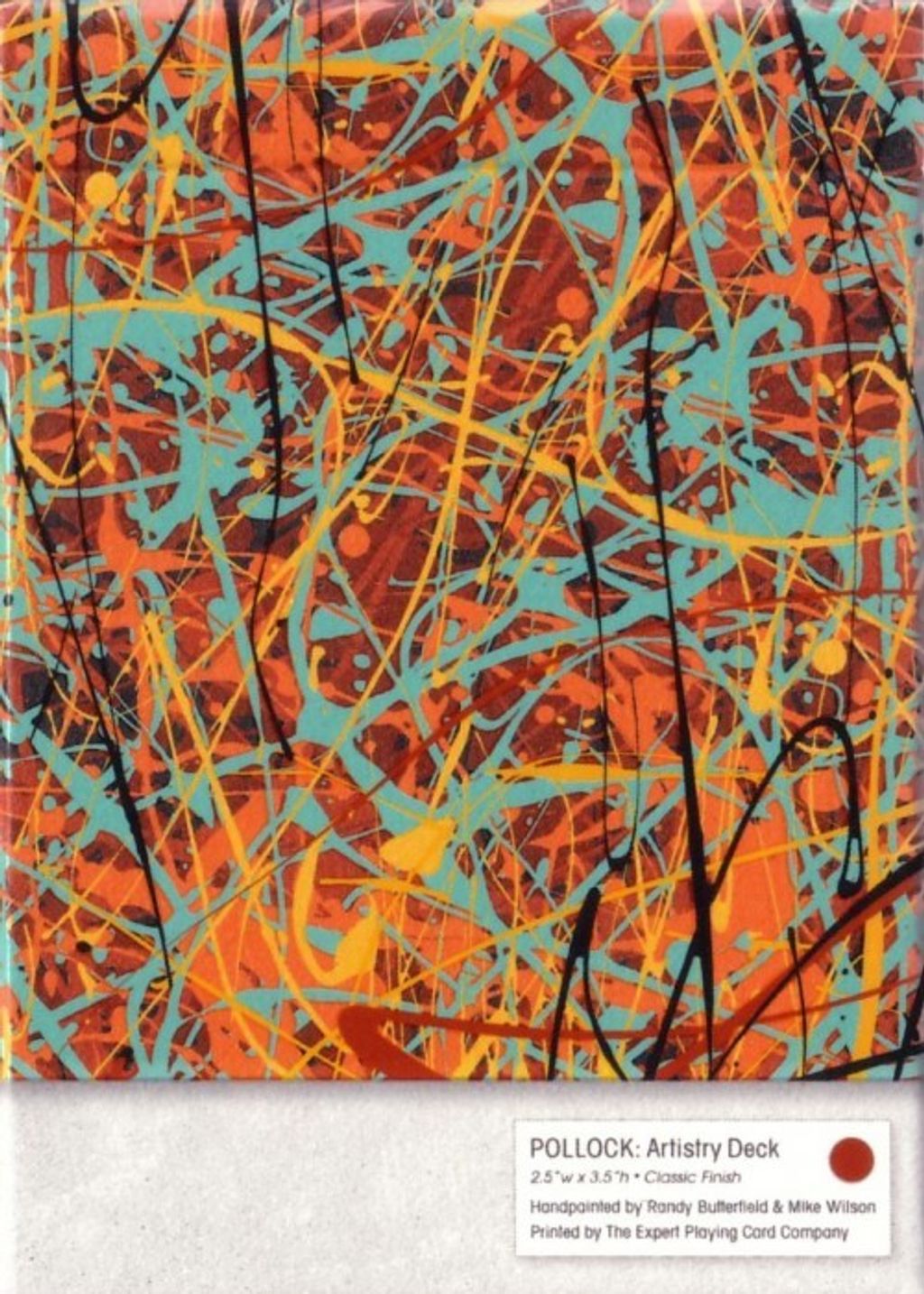 Inspired by the work of Jackson Pollock, the POLLOCK: Artistry Deck is a nod to Pollock's ability to reimagine how artwork and personal expression could be intertwined. The splatter artwork is hand painted by Randy Butterfield and Mike Wilson. The Deck is printed by The Expert Playing Card Company's Taiwan printer, and utilizes their exceptional Classic Finish.