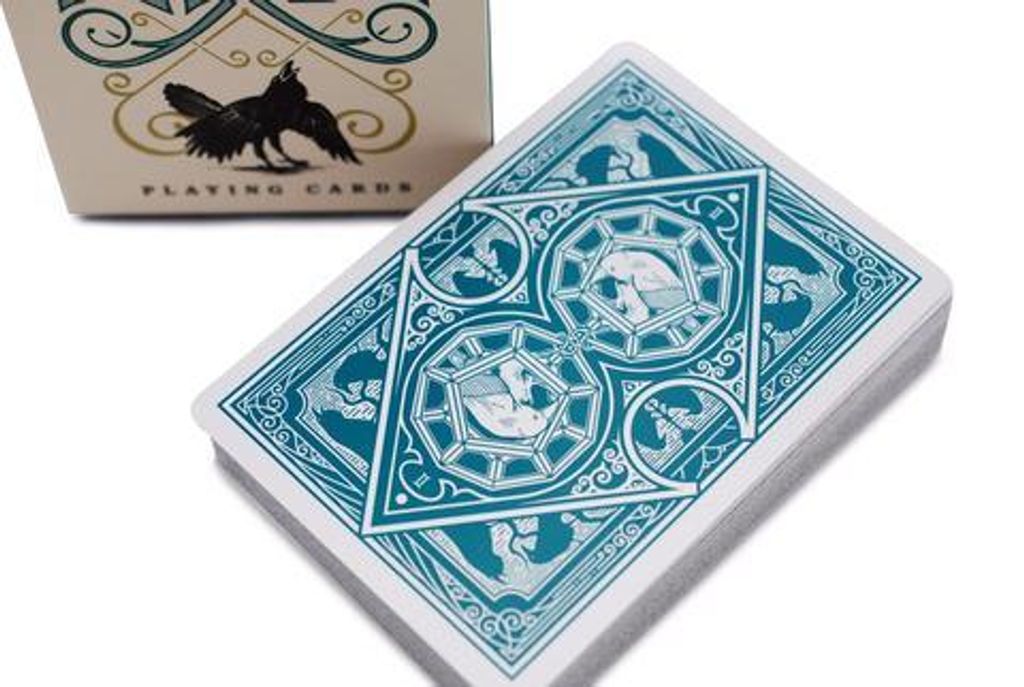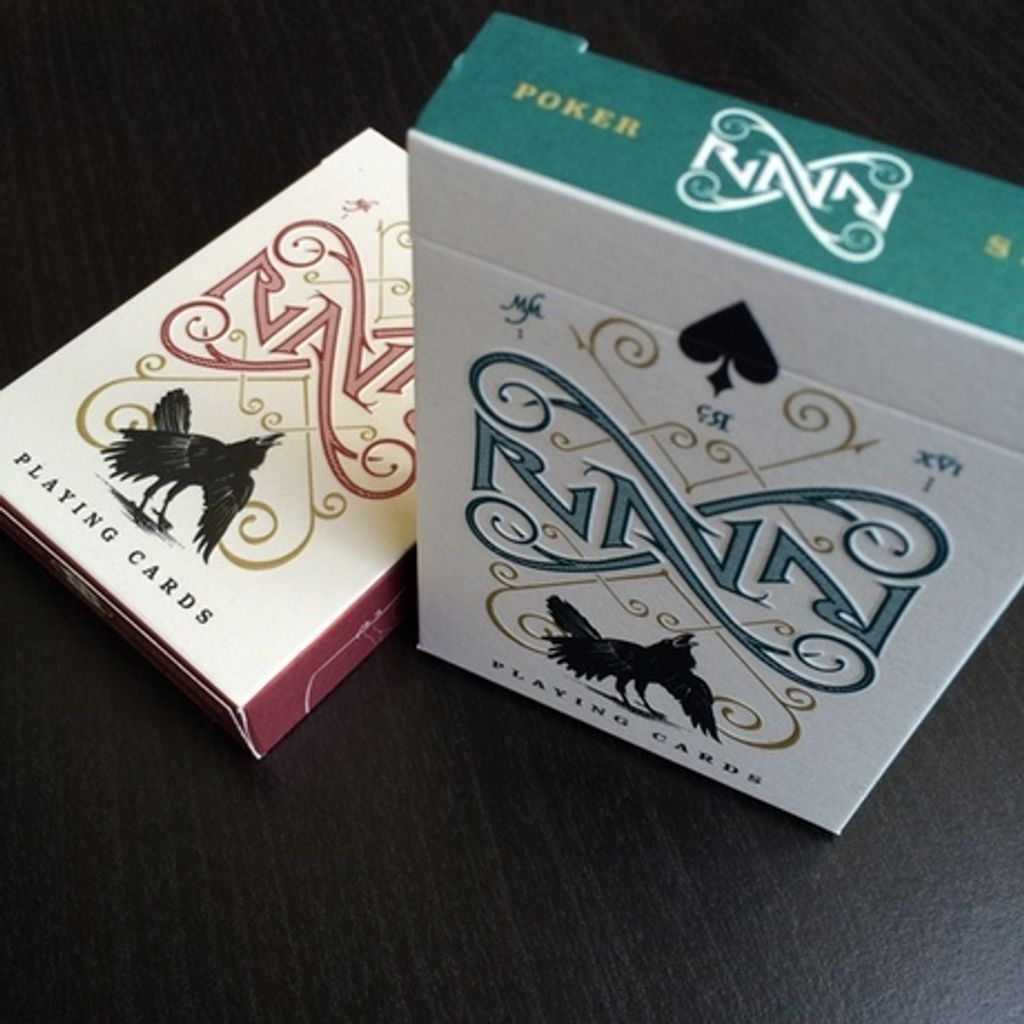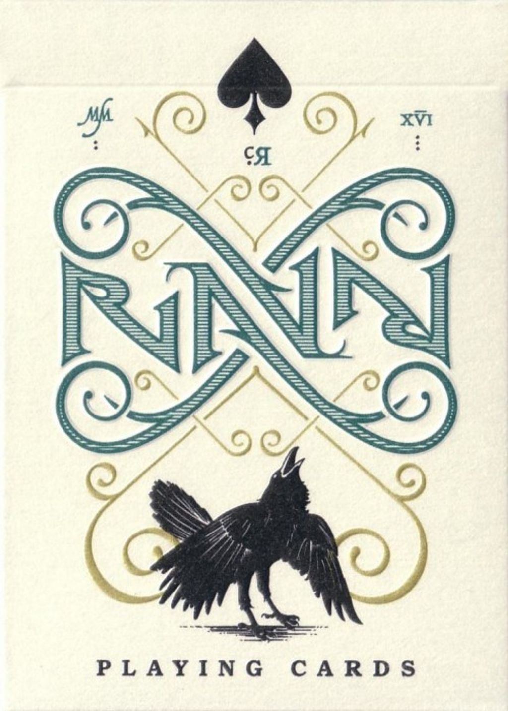 Ravn Playing Cards is a custom designed deck of poker size playing cards, designed by Stockholm17 for Caroline Ravn. Stockholm17 teamed up to deliver an elegant and classic looking deck of playing cards, with improved courts and standard pips. Perfect to perform magic tricks, cardistry, and of course to play at the green table.