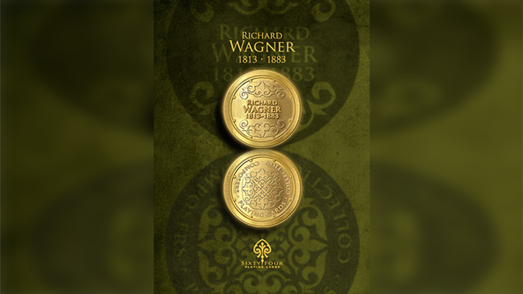 Richard Wagner Playing Cards, designed by SixtyFourPlayingCards, is a unique and elegant deck of playing cards for collectors, where the protagonists one of the greatest Composers of classical and symphonic music of all time. The theme of Wagner is dark green and will be the color of the theme of the tuck box, the back of the cards and the color theme of court cards.The cards are all created with an original design. It is a limited and numbered edition and will not be reprinted.