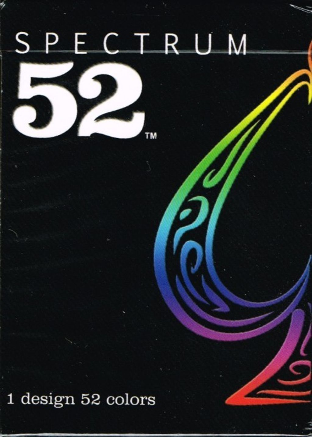 Now, the Spectrum Deck has come into it's own, Spectrum 52 is a self branded deck of beautiful playing cards following the same color scheme as the original. Featuring the Spectrum Ace of Spades, the Spectrum Jokers and a clean, elegant back design inspired by the classic casino decks from Jerry's Nugget, Bud Fulton's and the Wynn.