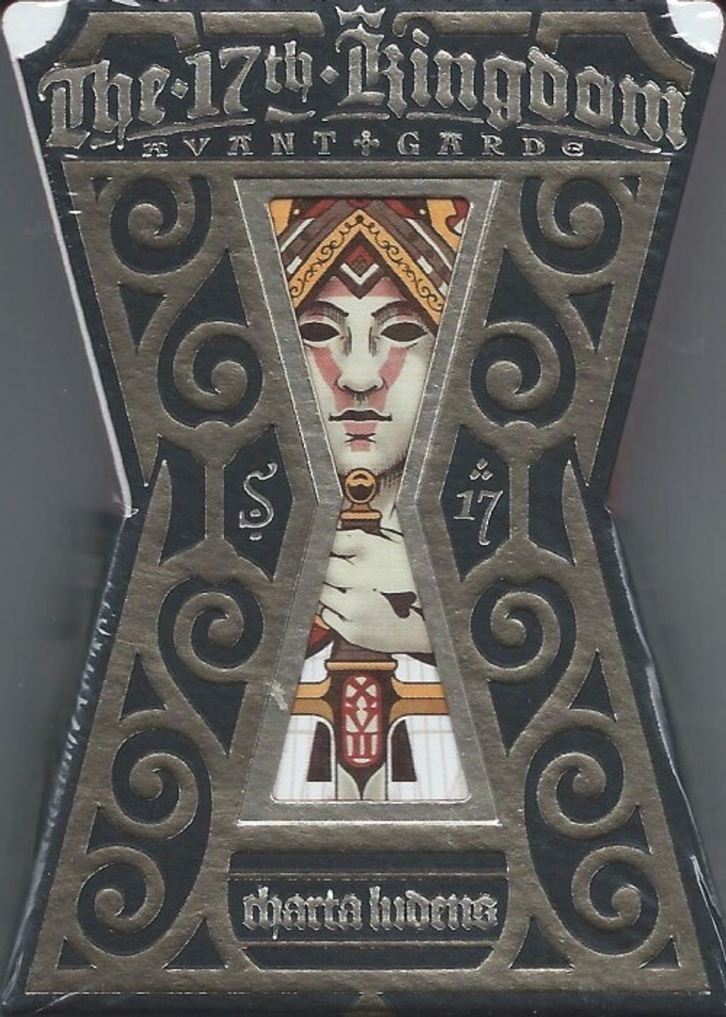 The 17th Kingdom Avant Garde Playing Cards are a unique deck with an hourglass shape, setting them apart from the ordinary. These cards handle remarkably well, making them suitable for a variety of purposes. Your initial interaction with them is sure to evoke a sense of intrigue. Remarkably, their ergonomic design surpasses even that of conventional playing cards.The included 'foldbox' boasts two foils, embossing, an inner red coloring, and an ingeniously glue-less construction.