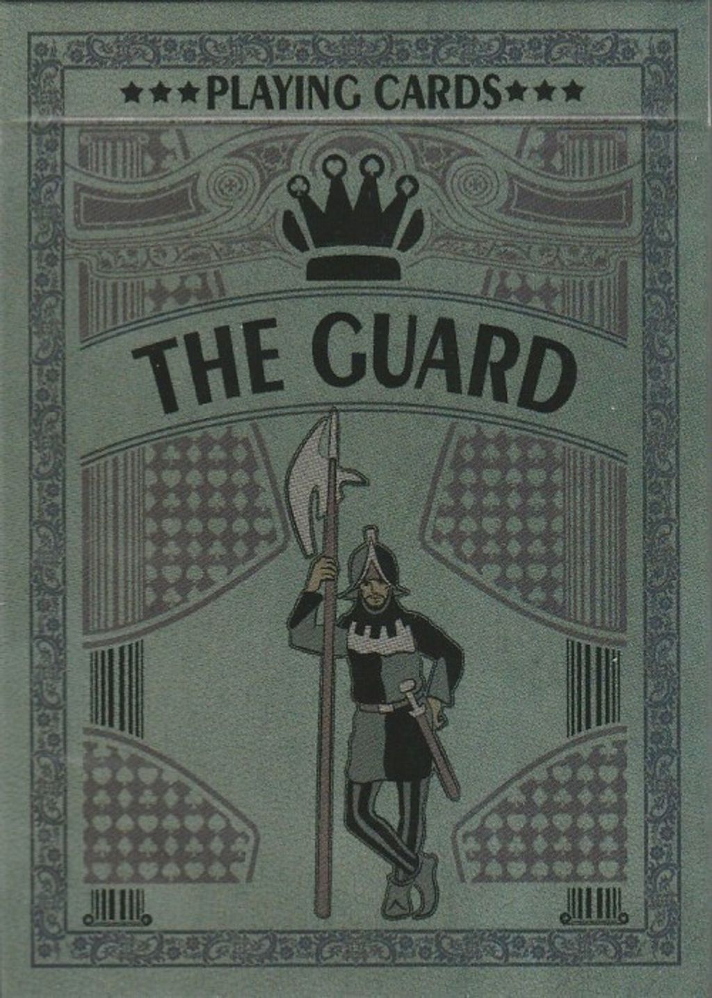 The Guard Slate Playing Cards A retro-classic vintage inspired design for the modern player, collector, cardist or magician. The Guard Slate Playing Cards is expertly designed by well-known Polish artist, Artur Rajch. Interesting touches have been provided for the court cards and Aces. And, of course, someone is standing guard on the tuck case.