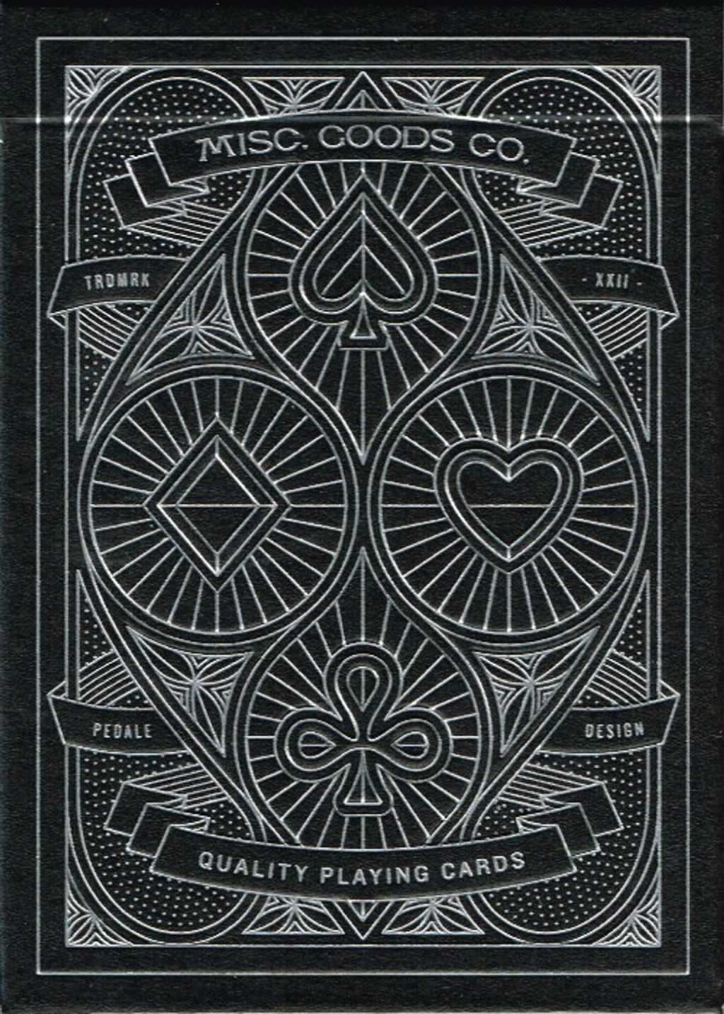 The MGCO Black Playing Cards is a completely redesigned deck of playing cards. The illustrations on the cards have been redone; from the tuck case to every symbol, court card, and even the typography.