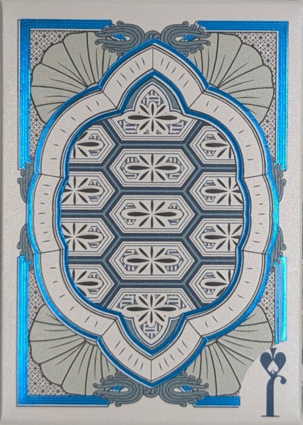The card backs of the Urashima Tarou Origami Editions are a tribute to the elegance of simplicity and the heart of the tale. Featuring a minimalist design inspired by the intricate patterns of a sea turtle's shell, each back is rendered in a single, bold color.