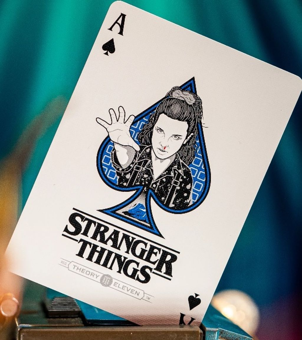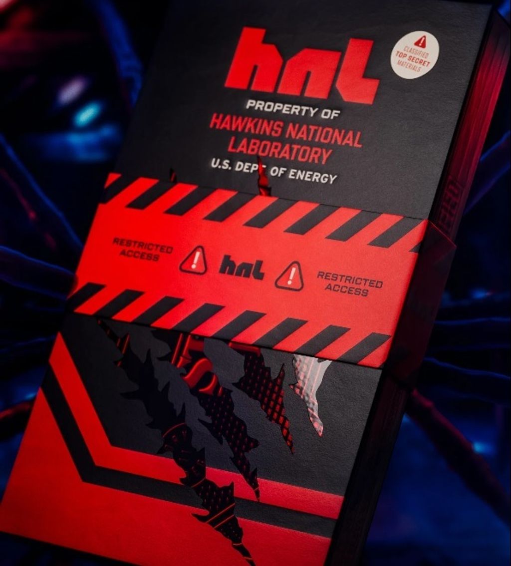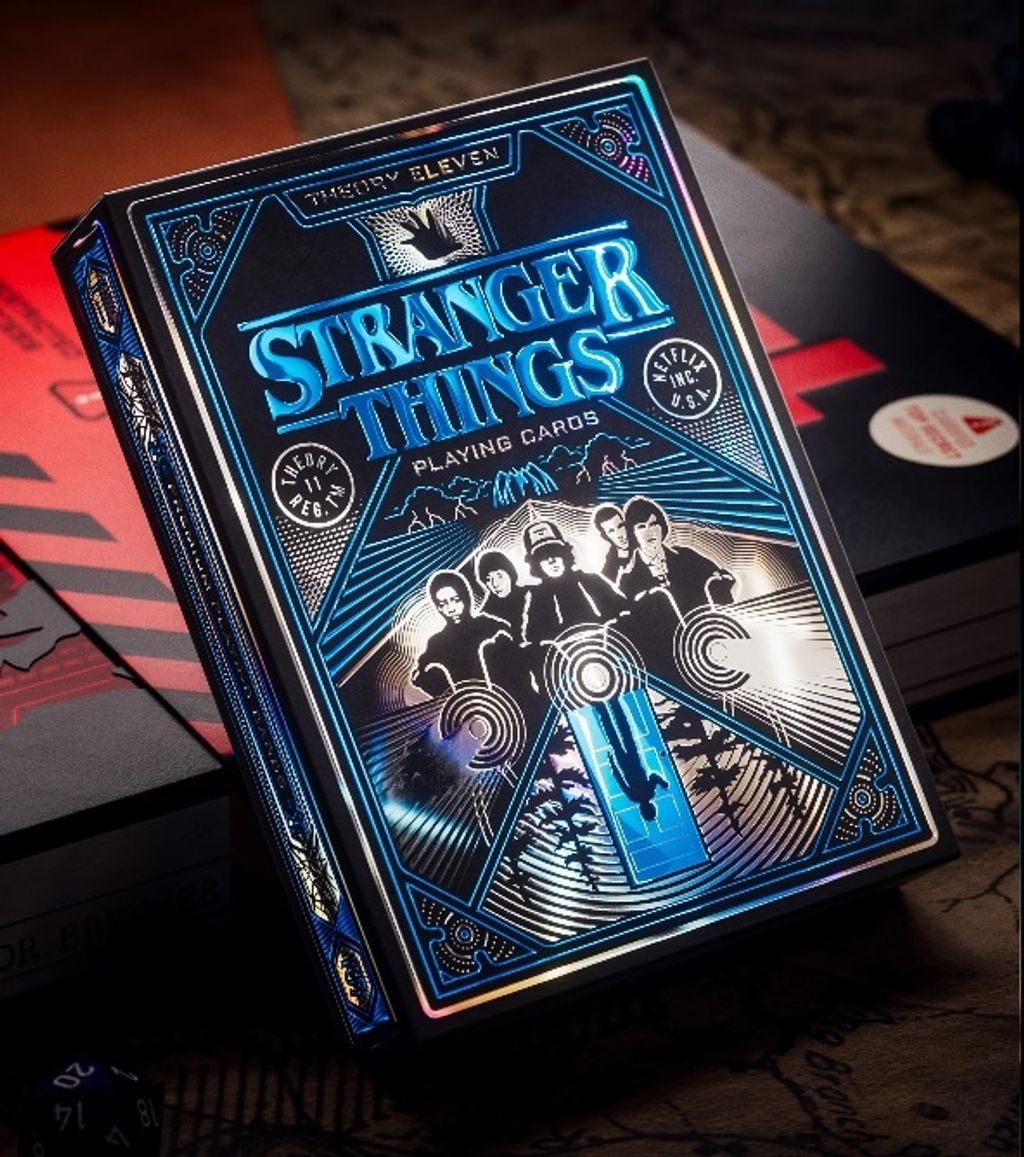 Uncovered directly from the Hawkins National Laboratory archives - three decks housed in a premium VHS-style box, featuring detailed embossing with striking red and holographic silver foil, featuring the blue holographic foil Upside Down Special Edition!