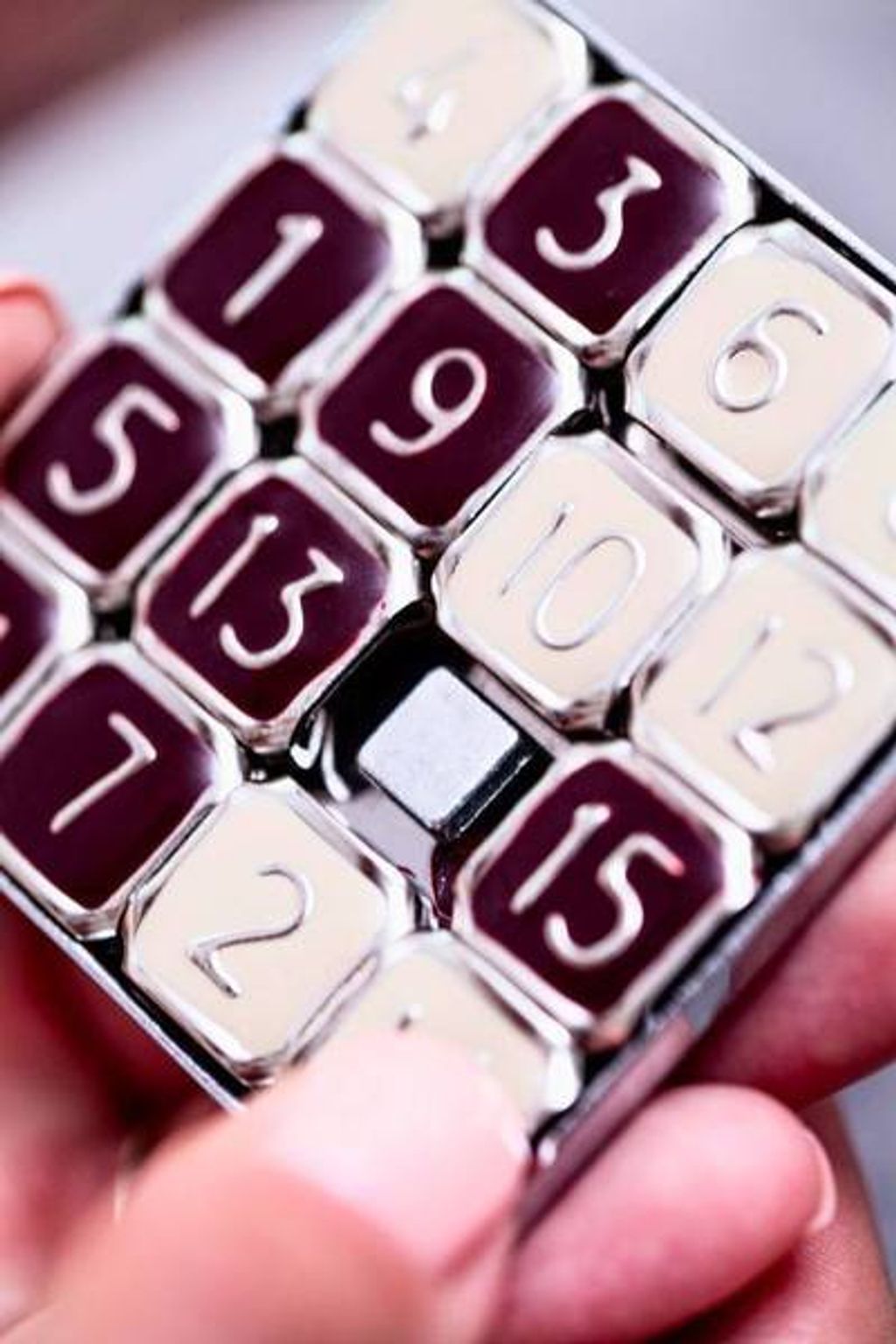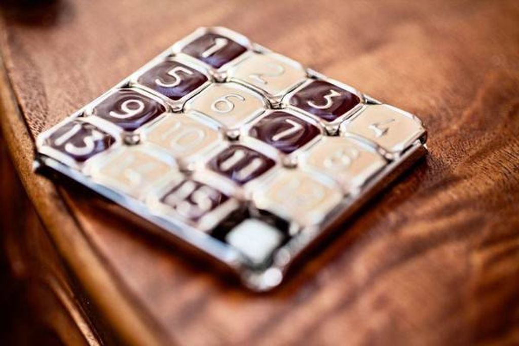One of the most popular puzzles ever produced, this brainteaser has stumped millions since the 1870's. The tiles can be scrambled in seemingly endless combinations which makes it quite challenging to get all fifteen numbers back in the right order. This sophisticated steel and enamel reproduction comes in a red leatherette case.