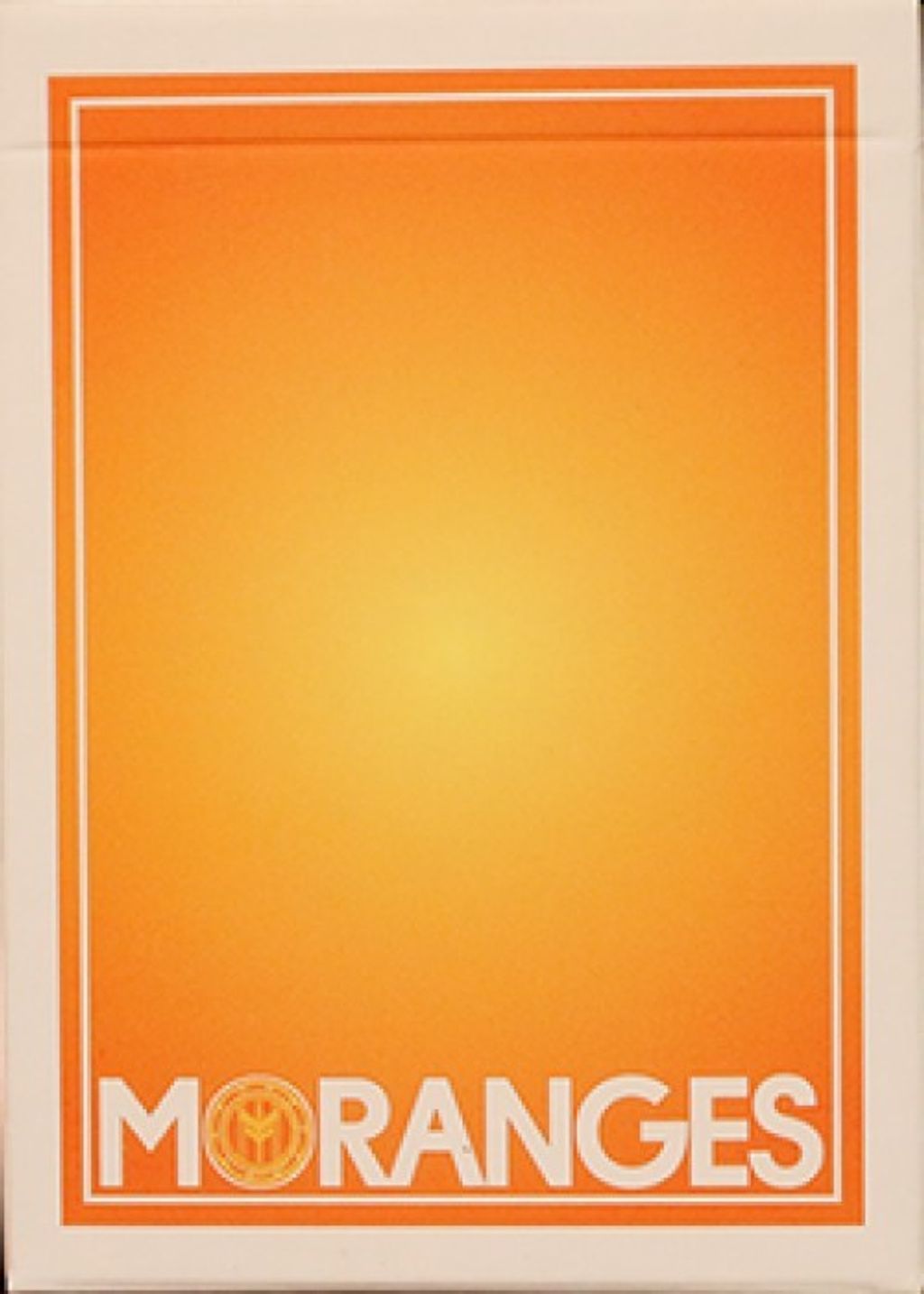 Moranges is a playful deck of playing cards, inspired by vintage casino design, and printed with Cartamundi. It's a minimalist mirrored back design, blending colors from mangoes and oranges. With easy-to-read faces, Moranges is a deck that people can use everyday for both cardistry and magic.
