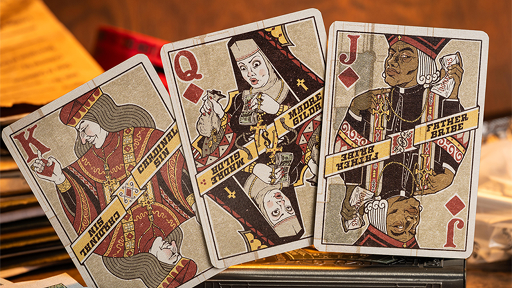 Evidence seized at The Sanctuary - home of a gang of petty criminals disguised as clergy, plotting heists, bootlegging spirits, and running crooked games.