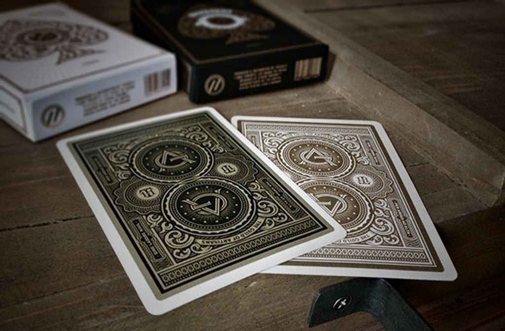 Artisan Playing Cards are produced at The United States Playing Card Company using FSC-certified papers derived from sustainable forests, vegetable-based inks and starch-based laminates. The result is a durable finish that respects the environment. Sealed with a red tax-stamp, vintage sticker seal marked with the exact month and year of print.