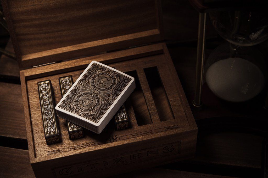 Citizen Playing Cards are Made in the USA using FSC-certified paper derived from sustainable forests. Available individually or in a premium wood box set.