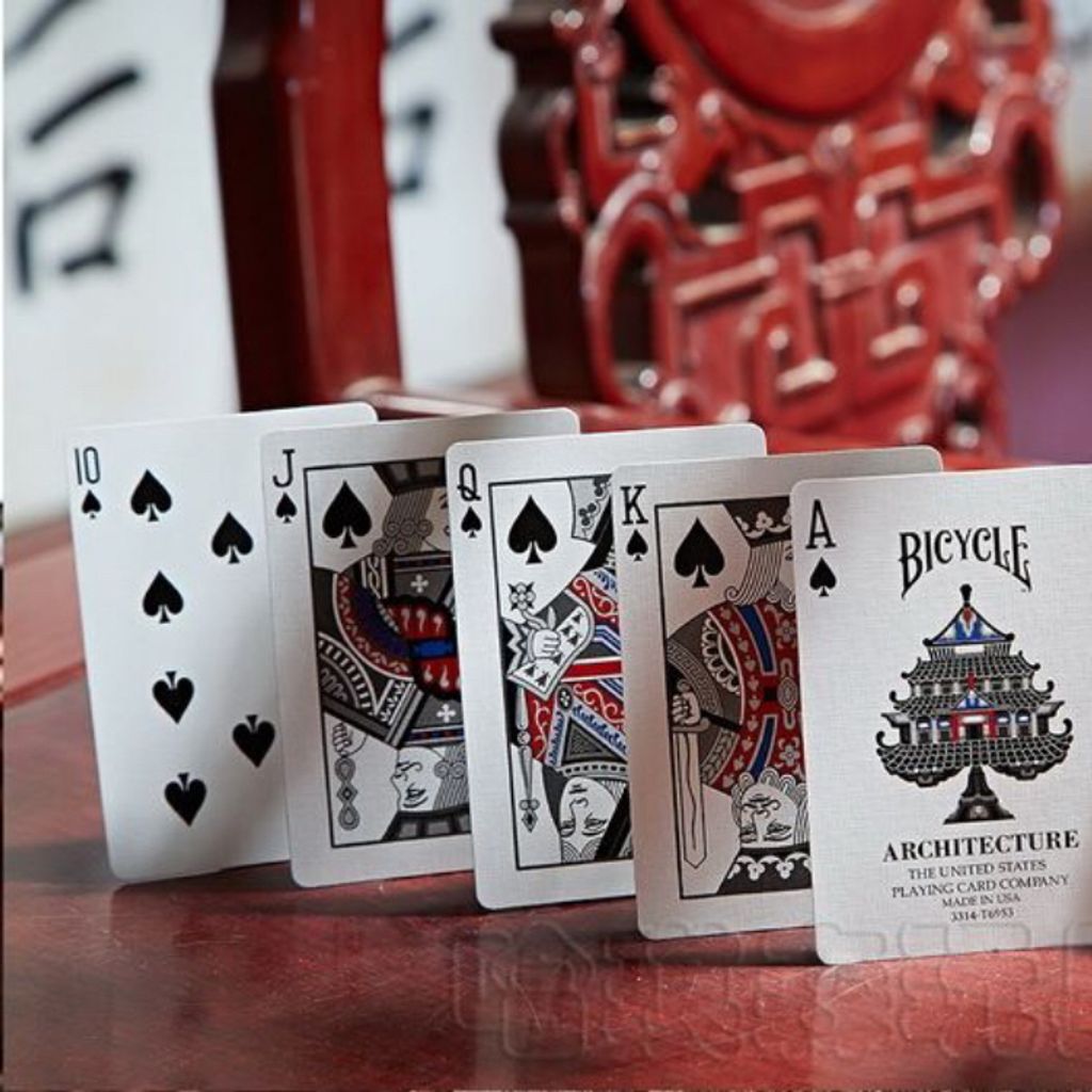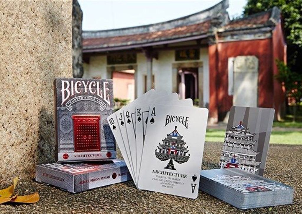 Following Feng Shui principles, the red door invites Bicycle enthusiasts inside to experience this unique deck that honors the symmetry of design, the intricacy of the stone work, and the beauty of construction that has been perfected over centuries.