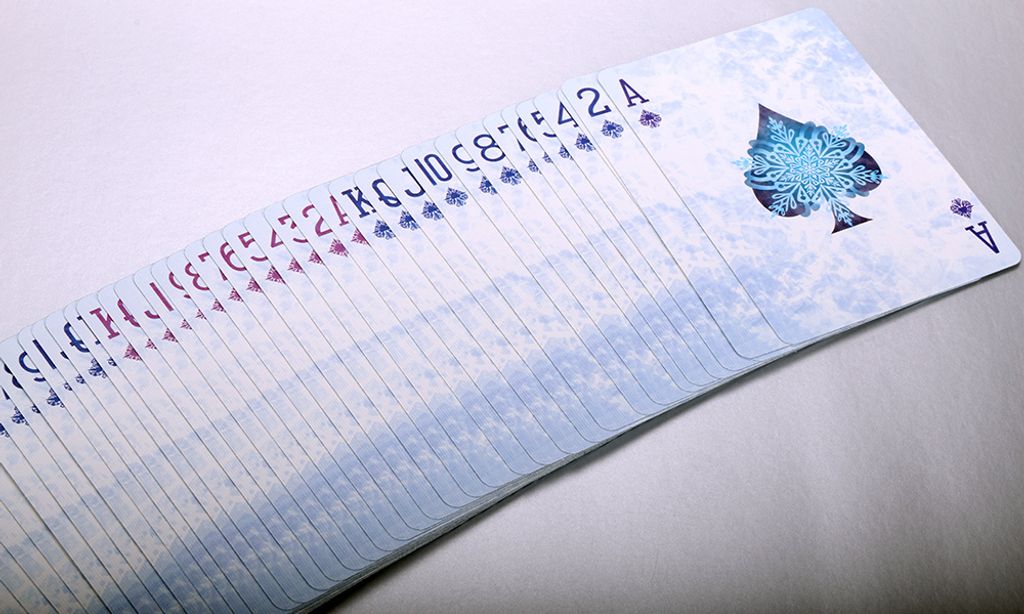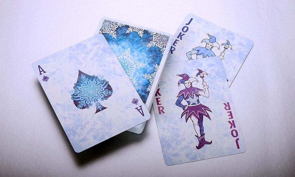 The pips are quite unique as they resemble tiny snowflakes. Each snowflake pip calmly rest upon each card showing off their beautiful form for you to enjoy.