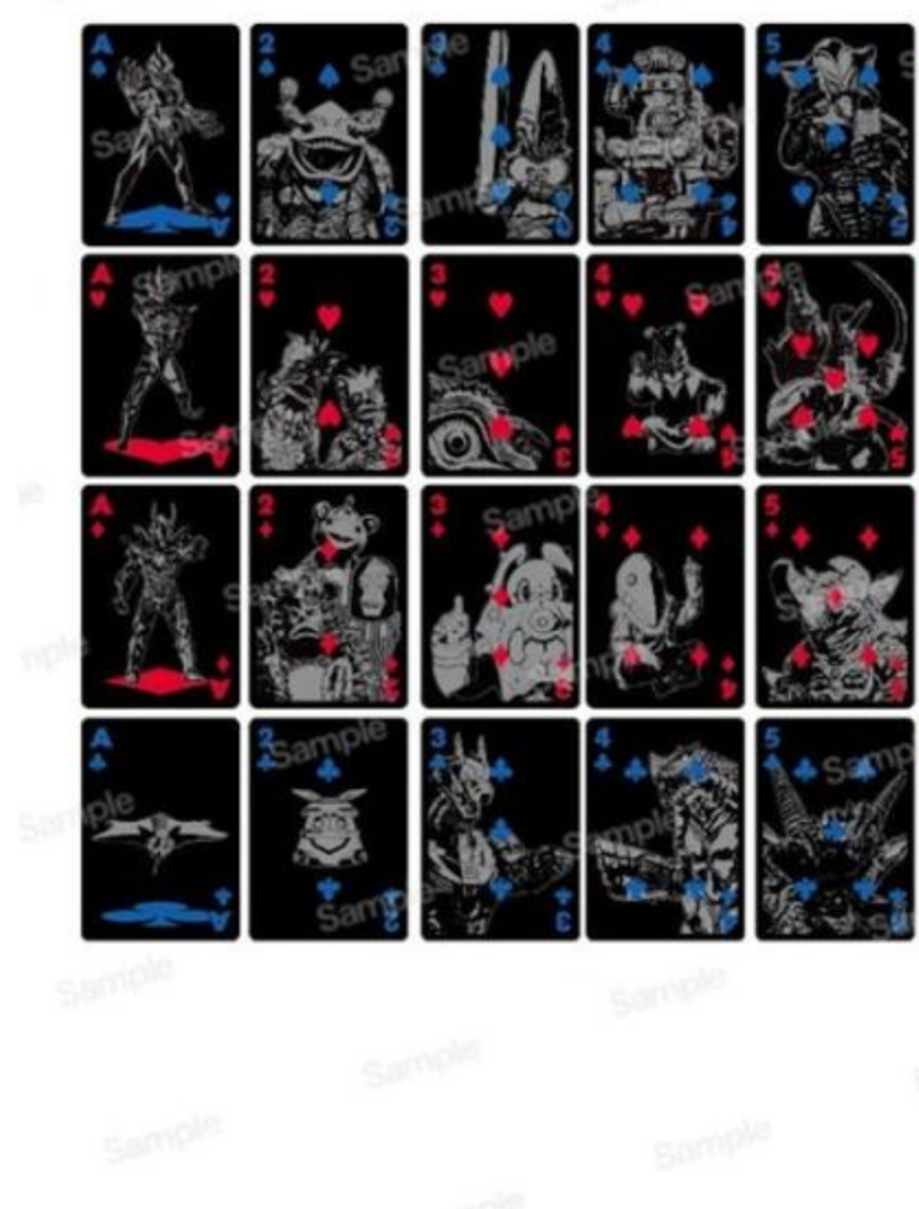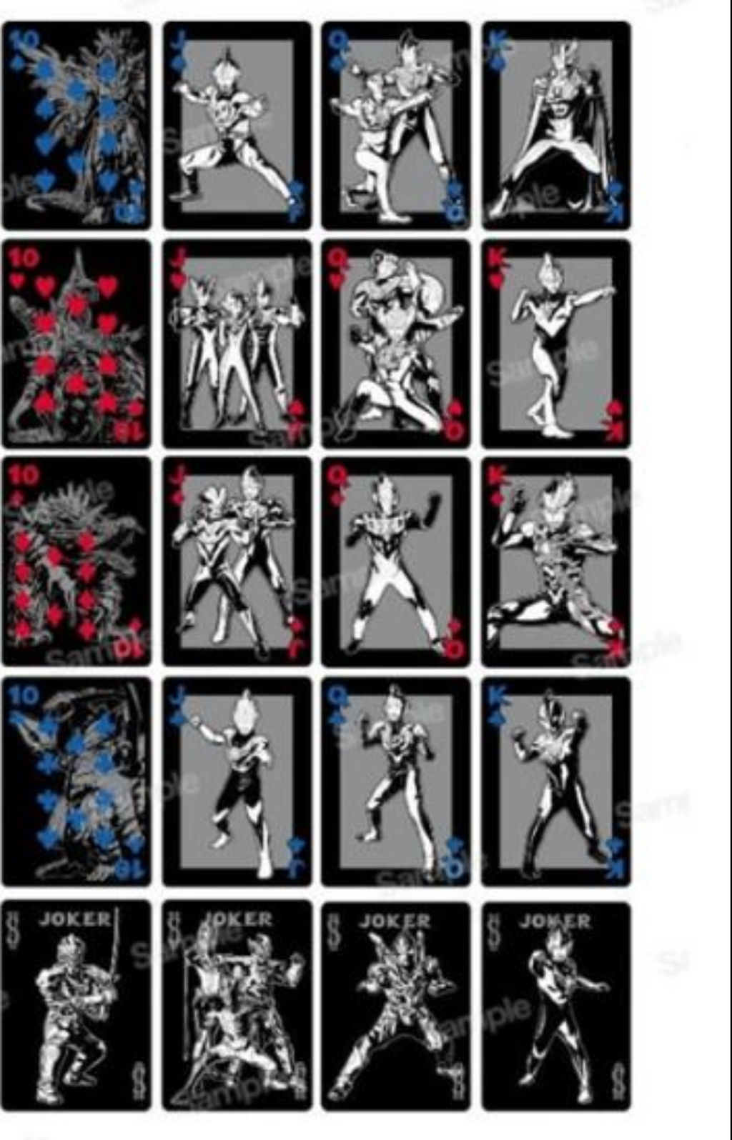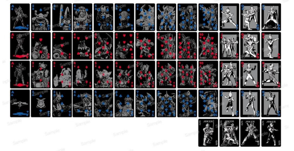 The tuck design features Zero in his iconic cape-clad pose, defined by sharp angles and fluid lines. The card back adopts a symmetrical geometric layout in a clean black-and-gray palette. On the court cards, the Ultramen appear one after another in their signature battle stances. The number cards highlight classic monsters from the series.Both heroes and kaiju are illustrated in gray line art on a black background. The battles of the new-generation Ultraman unfold across all 56 cards in this deck! Japan Import. Printed by USPCC.