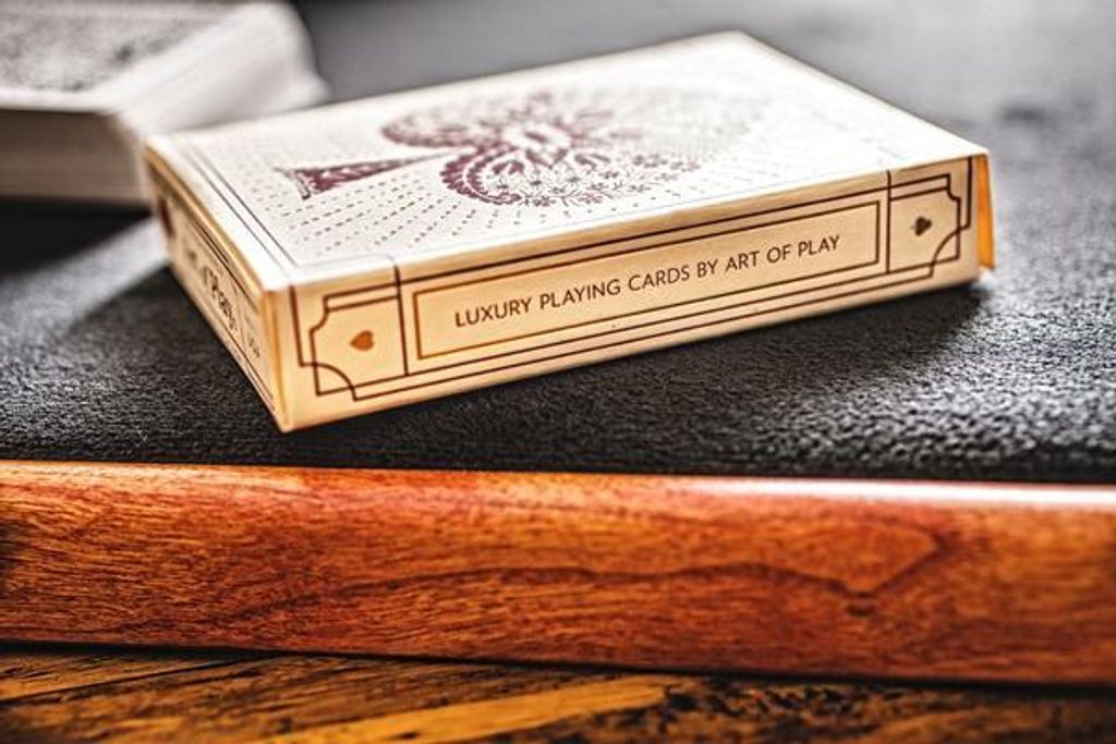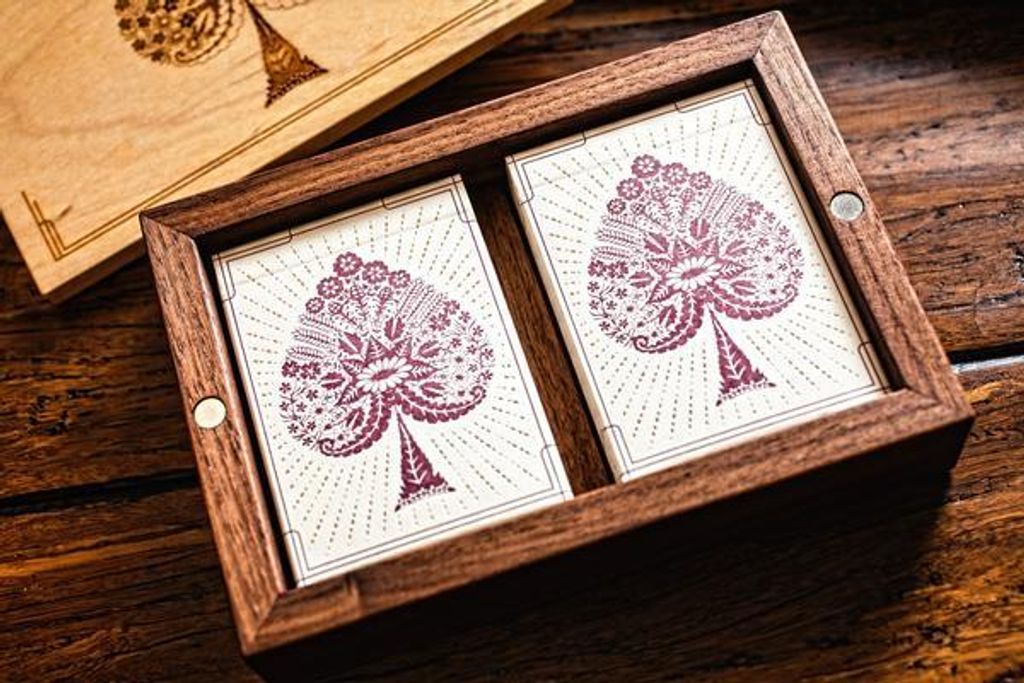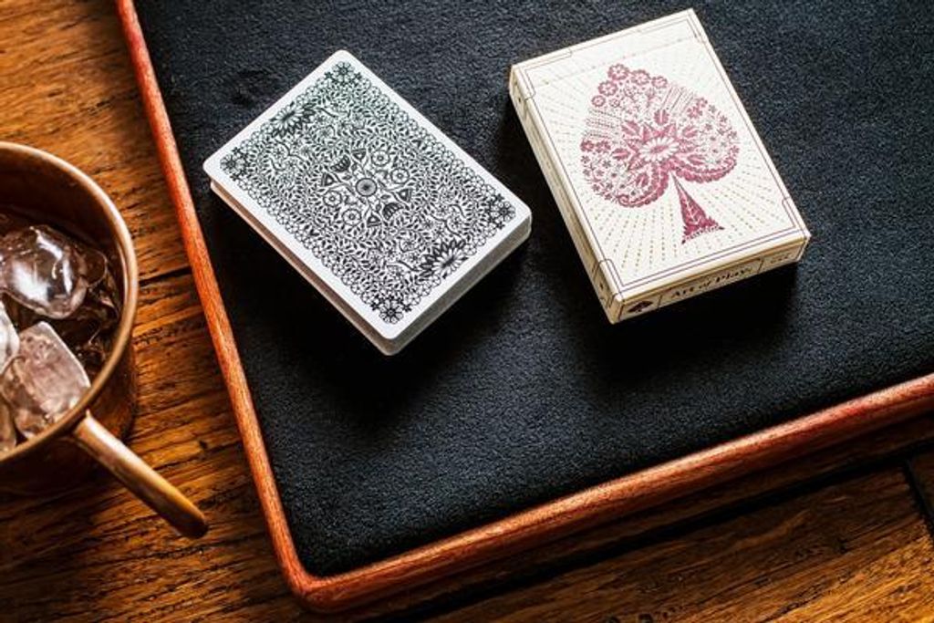 Hunched over a magnifying glass, craft knife in hand, Suzy Taylor is the epitome of patience and precision. Beneath her tiny blade is a blank sheet of paper, but in her imagination, a dizzyingly complex design is waiting to reveal itself. Days later, thousands of minuscule slivers of paper litter the tabletop and what is left is an intricate lace, extremely delicate and supremely beautiful. This is the time-honored tradition of paper cut art and these are new Papercut playing cards.