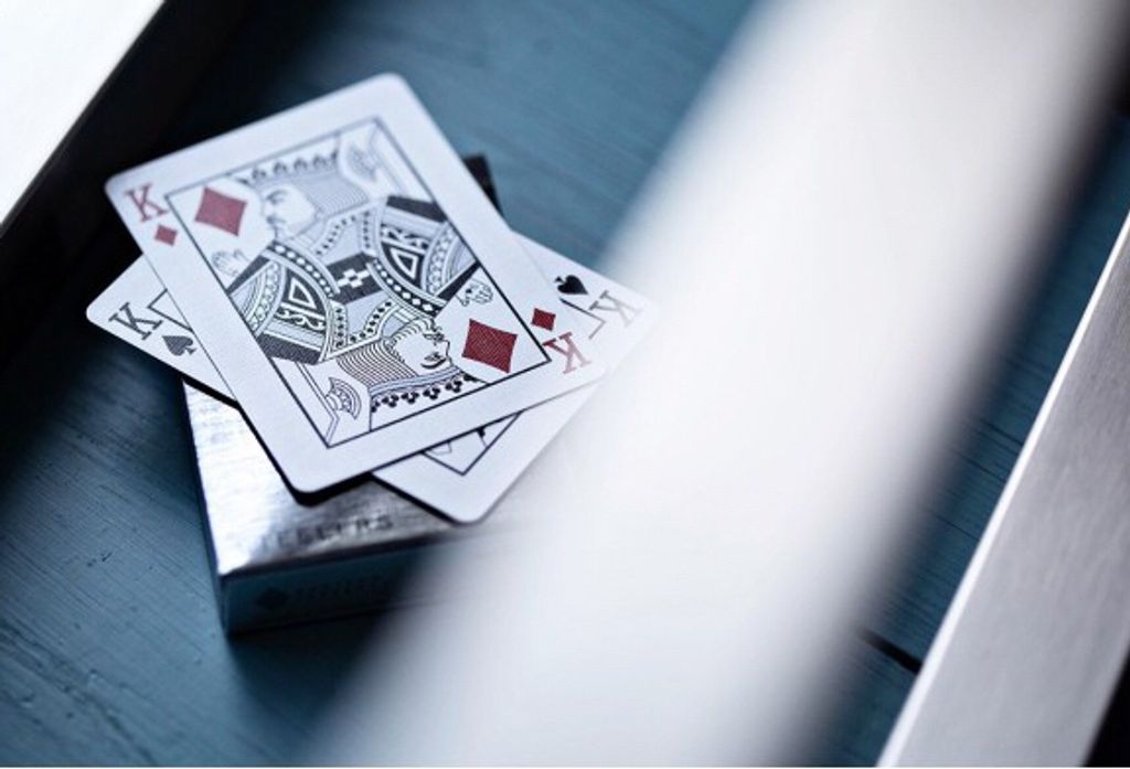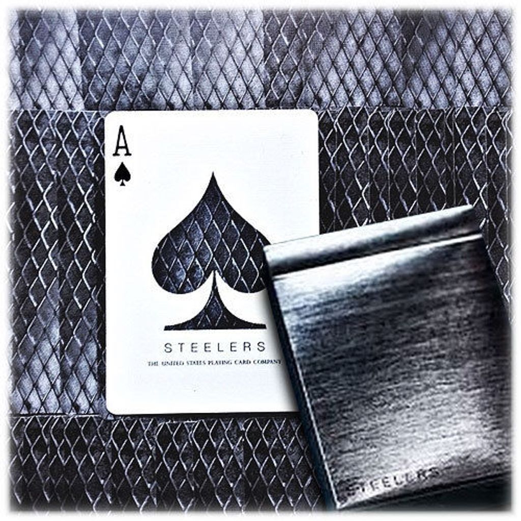 The blend of steel aesthetics and smooth playing cards come together to give an insight into industrial design. The brushed-metal box seems to fortify your cards, as well as making the ultimate statement...You're different from everyone else, so why don't your cards show it?